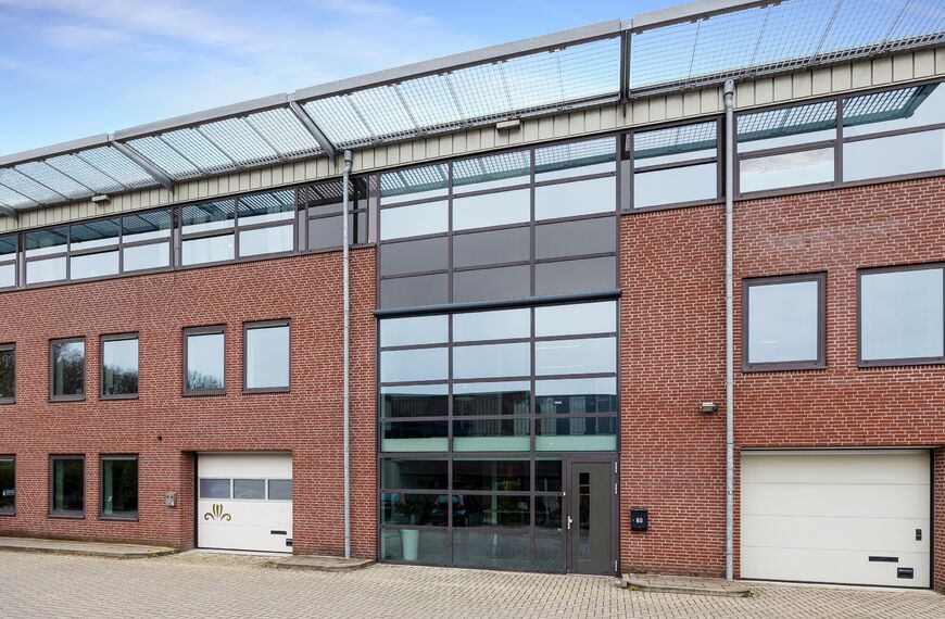Modern bedrijfs-/kantoorobject van 363m² VVO. Het object betreft de hoekunit waardoor er meerdere ingangen zijn en extra ramen. Bestaande uit een lichte showroom/kantoorruimte met vide verdeeld over de begane grond, eerste en tweede verdieping samen 202m² VVO. Aan de voor- en zijzijde bevindt zich de bedrijfsruimte met een vrije hoogte van 8.40m. met twee grote overheaddeuren aan de voor - en achterzijde en een extra toegangsdeur welke toegang biedt tot de bedrijfsruimte van 161m² VVO. Aan de voorzijde is er verder de beschikking over een viertal eigen parkeerplaatsen en twee openbare parkeerplaatsen.Object is per direct te betrekken. Huurtermijnen voor kortere en langere duur bespreekbaar!