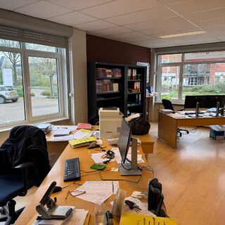 Aan de voorzijde op de begane grond en op de hoek van dit gerenoveerde bedrijfsverzamelgebouw ligt deze fraaie kantoorruimte van ca. 144m² (NVO). Deze lichte ruimte is gelegen op de hoek, waardoor van twee zijden licht en heeft een eigen entree/hoofdingang.