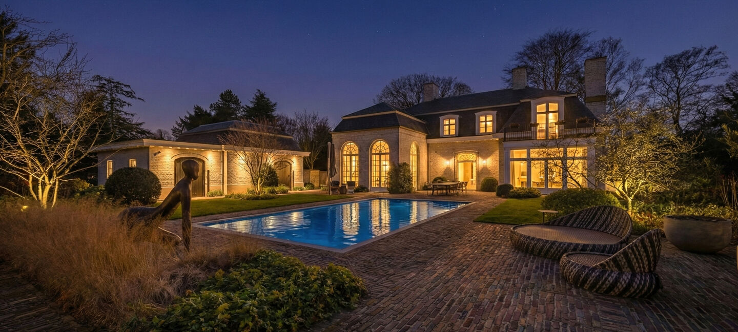Deze vrijstaande topvilla bevindt zich op een absolute A-locatie: op loopafstand van de charmante dorpskern van Blaricum, midden in een rustige en groene omgeving.
