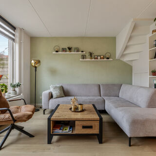 • Tuingerichte woonkamer met grote raampartij, deur naar de tuin.