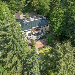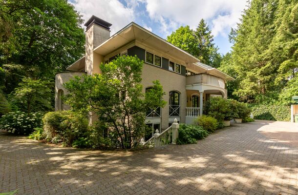 In het groen verscholen en omgeven door een prachtige aangelegde tuin van bijna 3.300m² ligt deze zeer bijzondere villa uit 2007. Het ontwerp kenmerkt zich door de subtiele Zuid-Europese invloeden met prachtige rondingen die uniek zijn in deze omgeving. De ruimte, het fraaie uitzicht en de prachtige lichtinval in combinatie met de fraaie afwerking maken het een waar genot om hier te wonen.Deze heerlijke familevilla beschikt over maar liefst ruim 600m² netto gebruiksoppervlak en is door haar indeling is geschikt voor bewoning door (grotere gezinnen en eveneens voor dubbele bewoning doordat er een separaat appartement aanwezig is met eigen entree of kantoor/praktijk aan huis.