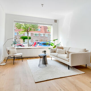 De woonkamer aan de voorzijde van de woning en kijkt uit over de Cornelis Mertenssstraat.