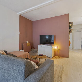 De benedenwoning heeft een entree in het trappenhuis, woonkamer met half openkeuken, gang en slaapkamer. Badkamer met vaste wastafel en douche. Ruimte voor wasmachine en droger met opstelplaats voor cv-combiketel.
