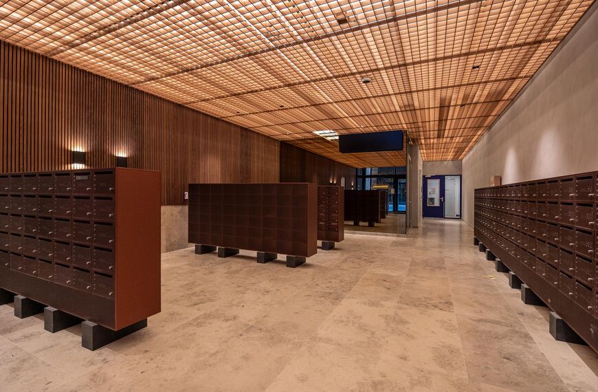 Fraaie entree, waar overdag een hospitality medewerker aanwezig is. Vanuit de entree zijn er maar liefst 4 liften die je naar de juiste verdieping brengen. Naast de entree bevindt zich een fietsenstalling waar alle bewoners gebruik van mogen maken.