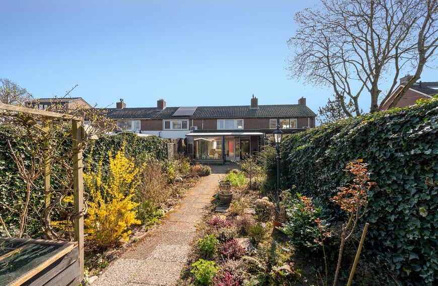 Aan een fijne laan gelegen, aan de achterzijde uitgebouwde middenwoning (1957), op een perceel van maar liefst 276m²!Aan de voorzijde van de woning is er in de ruime voortuin een eigen autoparkeerplaats en de ruim 28 meter diepe en op het zonnige westen gelegen achtertuin heeft achterin de tuin een groot bijgebouw van ruim 50m² met een grote bergzolder van 34m². Dit multifunctionele bijgebouw is voorzien van gas-, water- en elektra-aansluiting en heeft zowel aan de tuinzijde als aan de achterzijde (achterom) dubbele openslaande deuren waardoor deze extra goed toegankelijk is.
