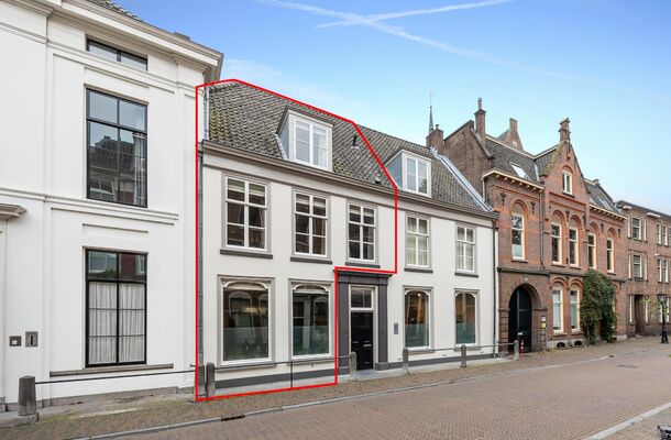 Aan de voorzijde zit je in deze inmiddels autoluwe, rustige straat midden in de stadse gezelligheid, met aan de achterzijde een oase van rust van de Abraham Dolehof. Groen, stil en na 18:00 zelfs afgesloten voor publiek. Het woonhuis zelf is grotendeels begin 17de eeuw gebouwd, het voorgedeelte is nog uit de 15de eeuw. Een grondige renovatie, een aantal jaar geleden, waarbij uitsluitend gewerkt is met uitstekende materialen, luxe voorzieningen zijn aangebracht en tevens veel karakteristieke elementen uit diverse eeuwen behouden zijn gebleven, maakt dit huis tot een ruim, comfortabel en zeer sfeervol geheel.