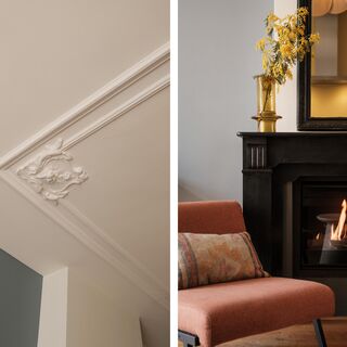 Wij komen binnen in een hal met garderobe en een modern toilet. De woonkamer ligt aan de voorzijde en voelt licht en ruim. Hoge plafonds met originele ornamenten geven karakter. De authentieke schouw met moderne gashaard uit 2021 brengt sfeer en comfort met één druk op de knop. Iedereen die hier binnenkomt, reageert op de enorme ruimte en de openheid van de leefverdieping.