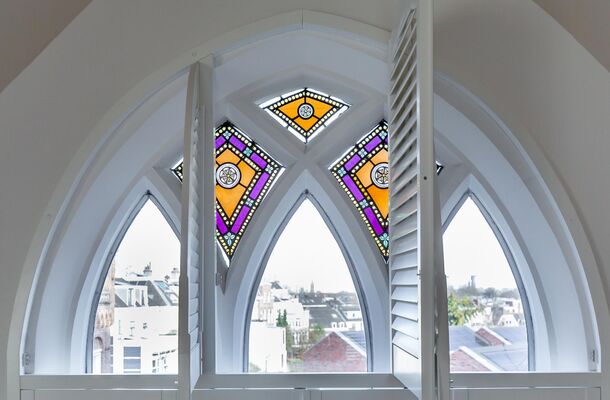 Uniek en exclusief wonen in het fraai gerenoveerde Hiëronymushuis. Dit prachtige Rijksmonument is in 2007 onder architectuur verbouwd tot 25 luxueuze appartementen. Onder de gewelven van de voormalige kapel mogen we zonder twijfel één van de meest bijzondere appartementen in het gebouw aanbieden. Deze luxe woning met prettige sfeer is verdeeld over twee woonverdiepingen. De grote woonkamer met uniek plafond en veel licht door de monumentale ramen in neogotische stijl is in de vorm van een vide verbonden met de ruime eetkamer en aansluitend de