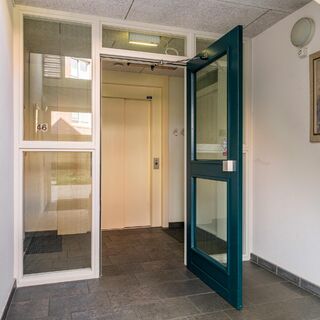 Entree met bellentableau (gelegen aan de achterzijde van het complex), lift en trappenhuis naar de parkeerkelder en de verdiepingen.