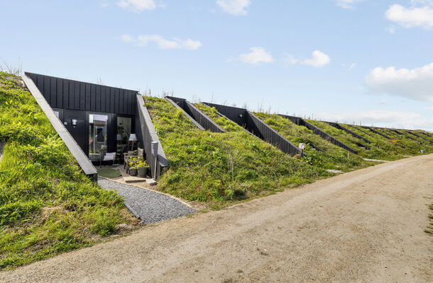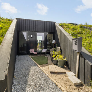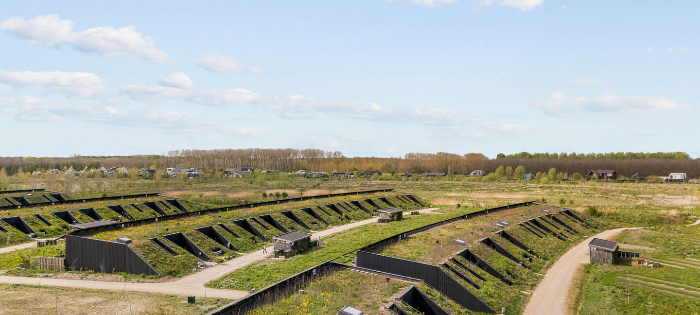Deze volledig gelijkvloerse woning van circa 83 m² (bouwjaar 2021, inhoud 361 m³) is een eigentijds, uitgesproken duurzaam ontwerp. Karakteristiek is de aarden taludconstructie met begroeid dak, waarmee de woning vrijwel oplost in het landschap. Bovenop liggen 18 zonnepanelen met een totaal vermogen van 6.264 Wp — goed voor een aandeel hernieuwbare energie van maar liefst 120% en het hoogst haalbare energielabel A++++.
