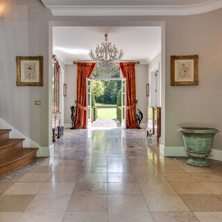Zodra u binnenstapt, voelt u de grandeur. De imposante hal, de hoge plafonds, de prachtige parketvloeren van 18e-eeuws Frans eiken en de zijden wandbespanningen creëren een sfeer die tijdloos en verfijnd is. Toch is het huis geen museumstuk: de ruimtes ademen comfort en leefbaarheid. Van de riante salon met open haard tot de intieme bibliotheek en de sfeervolle eetkamer, alles is ontworpen voor zowel grootse ontvangsten als gezellige familiebijeenkomsten. De woonkeuken "het kloppend hart van het huis" is voorzien van een La Cornue kookeiland, waar kookliefhebbers hun culinaire creativiteit de vrije loop kunnen laten.