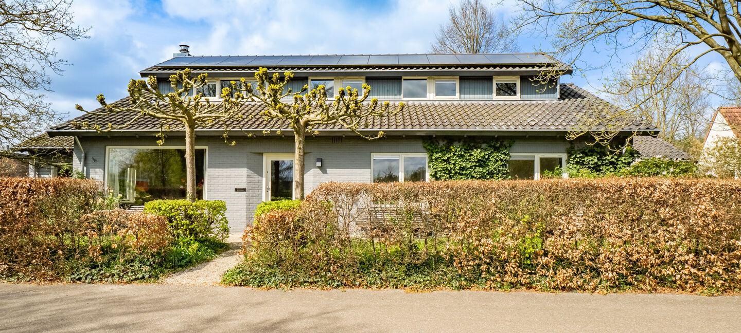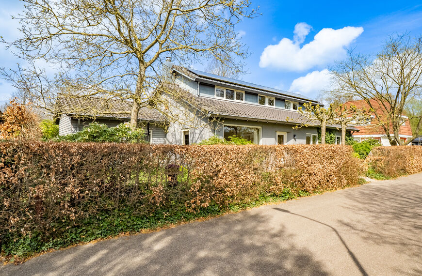 Vrijstaand wonen in het groen, met de stad op korte afstand!Bijna aan het einde van een heerlijk rustig doodlopend laantje, ligt omgeven door groen en de uitgestrekte weilanden, deze verrassend ingedeelde en zonnige vrijstaande villa (1970). Deze woning met opvallend veel leefruimte op de begane grond grenst aan de achterzijde aan weilanden en kijkt aan de voorzijde eveneens uit over groen en weilanden.