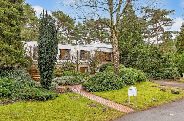 In een rustige, bosrijke omgeving, op loopafstand van het bos, ligt deze bijzonder degelijk gebouwde en goed onderhouden geschakelde bungalow (1976) met een woonoppervlakte van maar liefst 354 m². De woning kenmerkt zich door een praktische en doordachte indeling, waardoor comfortabel gelijkvloers wonen uitstekend mogelijk is. De royale woonkamer met grote schuifpuien biedt een prachtige lichtinval en een directe verbinding met de tuin. Hier geniet je in alle rust van privacy en groen.