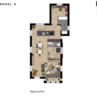 De indeling is als volgt: Entree, hal met toilet en meterkast, deur naar woonkamer aan de voorzijde met veel lichtinval rondom, woonkeuken met openslaande deuren naar de tuin, deur naar werkkamer aan de achterzijde. Vanuit de keuken kunt u naar de bijkeuken met deur naar de zijtuin. In de bijkeuken is ook de techniek en wasmachine-aansluiting gesitueerd.