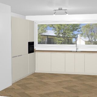 Moderne L-vormige keuken met inbouwapparatuur