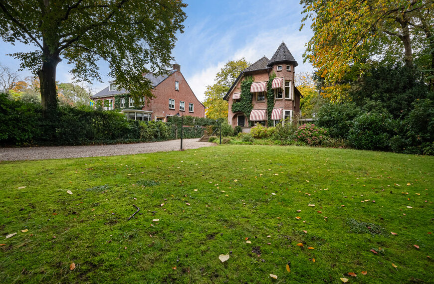 Fraai met oog voor detail gerenoveerde en op fraaie wijze uitgebouwde zeer karakteristieke familievilla met torentje, prachtige tuin rondom van 1.713m² en volop leefruimte!
