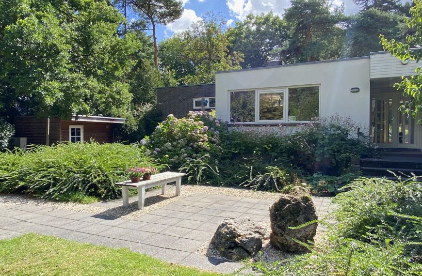 Binnen heerst een serene rust. De architect liet zich destijds inspireren door het gedachtegoed van Gerrit Rietveld: strakke lijnen, heldere vormen, grote raampartijen en een spannend spel van licht en ruimte. Het resultaat is een villa met karakter, openheid en een uitzonderlijk gevoel van harmonie.