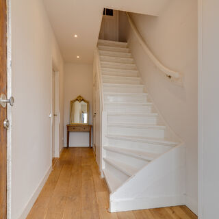 Entree via de hal, toegang tot de ruime zitkamer, keuken en achtertuin. Op deze verdieping vind je ook een WC en berging.