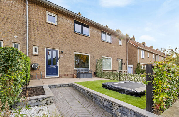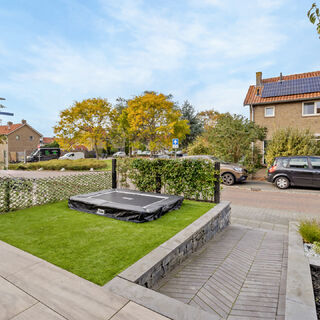 Zowel de voor- als achtertuin zijn aangepakt. De voortuin is betegeld en beschut, waardoor het een veilige en prettige plek is geworden waar kinderen bijvoorbeeld op de trampoline kunnen spelen. De achtertuin, gelegen op het zuiden, is diep en zonnig. Er is een royaal terras met een lager gedeelte met berging, overkapping en achterom. Achterin de tuin is recent een fraaie tuinkamer met schuifpui gebouwd, waardoor er een comfortabele plek is ontstaan die zowel in de zomer als in andere seizoenen goed bruikbaar is.